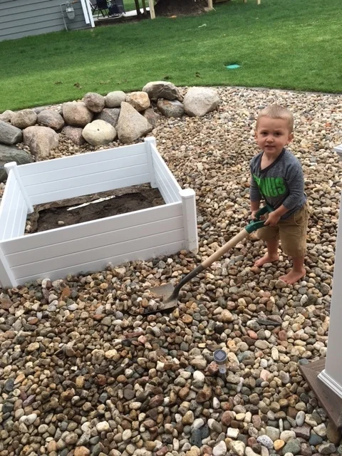 Step 1. Building the garden and filling it with dirt. Luca getting ready to bring in the dirt!